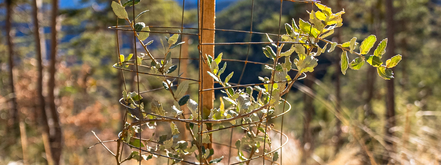 Grillage métallique destiné à la protection des jeunes plants en milieu forestier.
